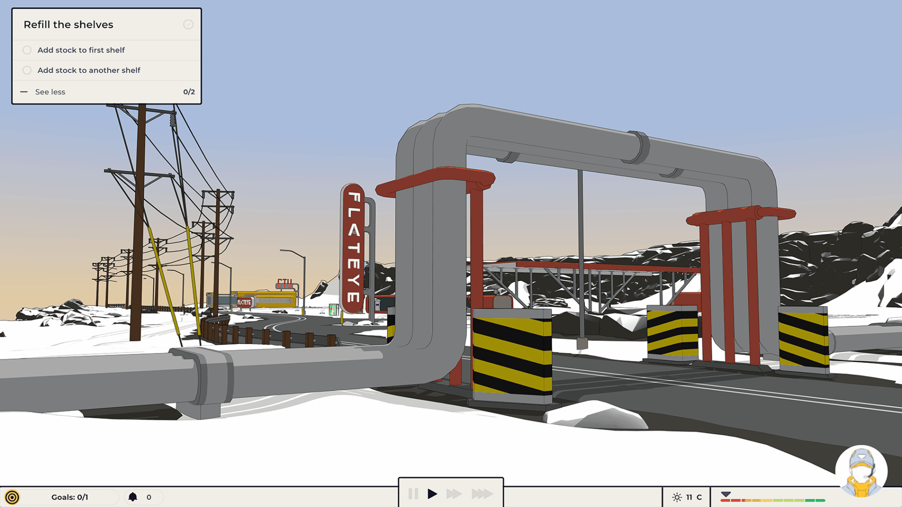 Each day you will need to report your store’s earnings and rating to the world’s first AI (and subsequently, the owner of Flat Eye and its parent company). A word of caution – don’t disappoint them.